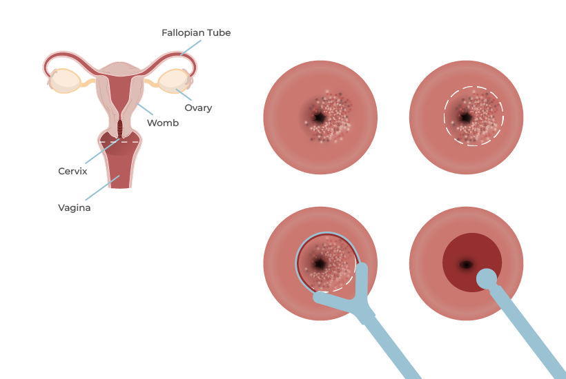 LLETZ (Large Loop Excision of the Transformation Zone), also known as loop diathermy, LEEP, loop excision, or loop biopsy, is the most common treatment for those with high-grade precancerous cells of the cervix or persistent low grade precancerous cells. This procedure uses a heated wire loop to remove abnormal cells, significantly reducing the risk of cervical cancer.